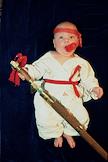Глава религиозной секты Виссарион держит на руках спящего ребенка. Секта организовала поселение под городом Минусинском, где они живут по принципам коммуны.