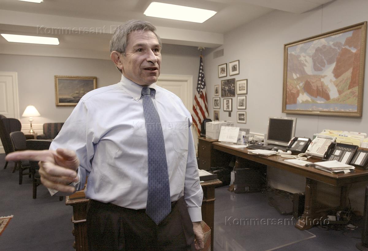 Заместитель министра обороны США Пол Вулфовиц в своем рабочем кабинете.