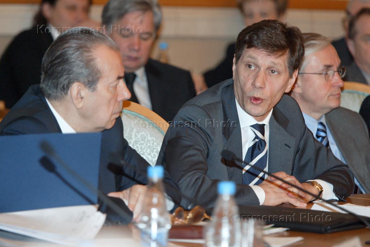 Oleg Kiselyov (left), chairman of the Renaissance Capital Group directors board, and President of the All-Russia Insurers Union Igor Yurgens (right) take part in a session of the board of the Russian Union of Industrialists and Entrepreneurs. The meeting took place in the President hotel.