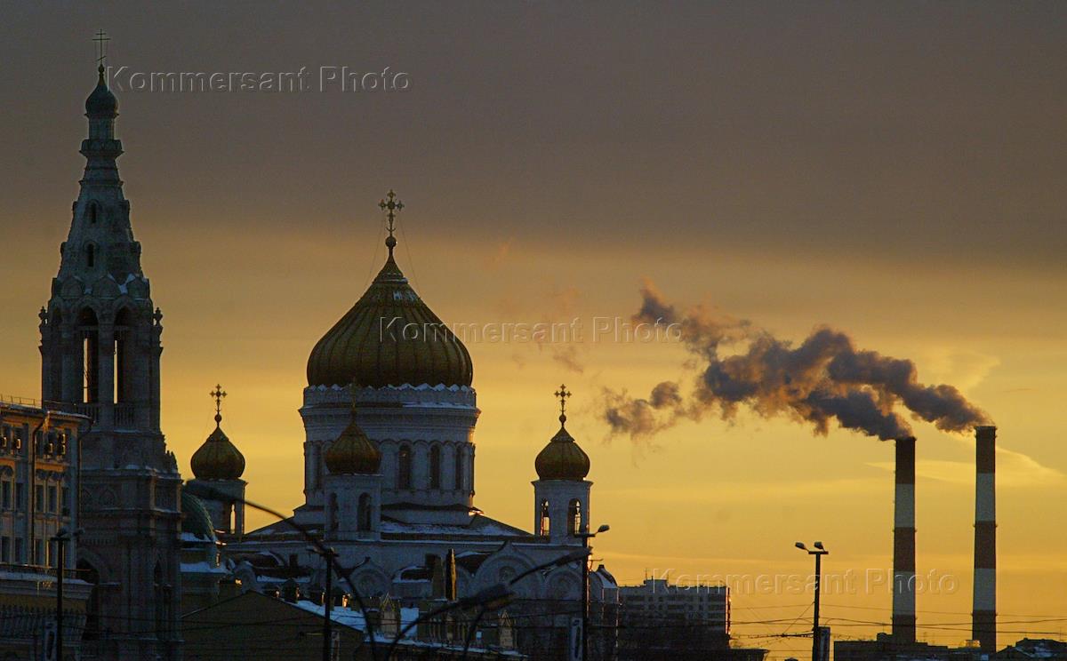 The Christ the Saviour Cathedral is seen in the evening.