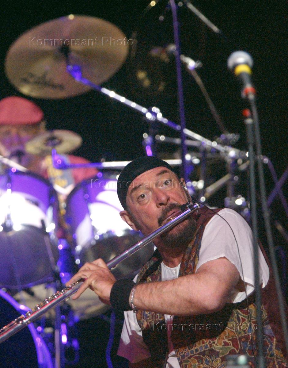 Musician Ian Anderson of the British rock band Jethro Tull performs on the stage of the Rossiya Concert Hall during the Jethro Tull concert tour in Russia.