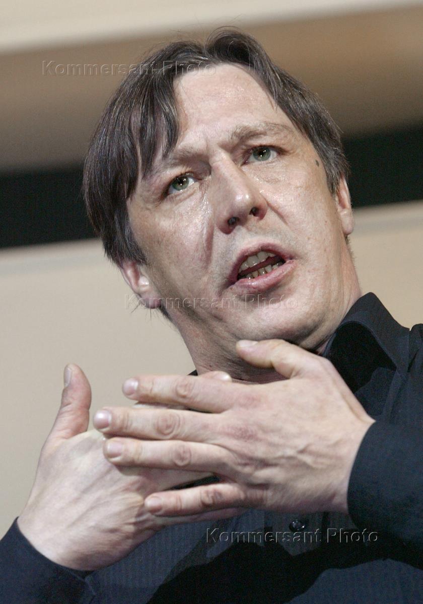 Actor Mikhail Yefremov is interviewed during the White Square film awards ceremony. The event was held in the Moscow Mayakovsky Theatre.