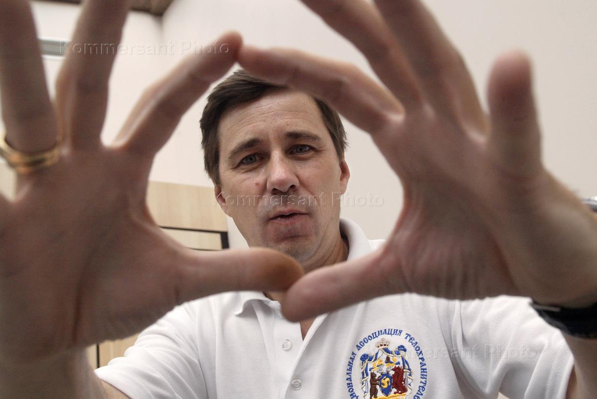 President of the Russian National Assoiciation of Bodyguards Dmitry Fonaryov is interviewed in his office.