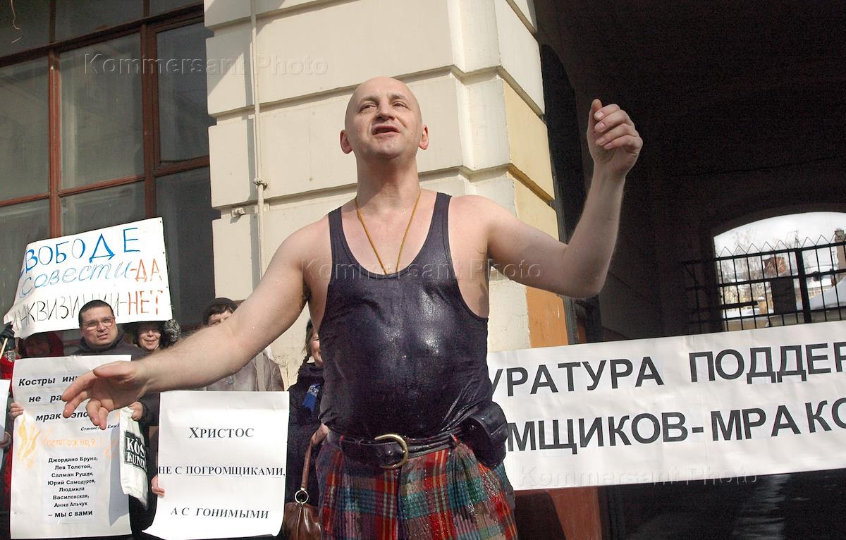 Supporters of the art-exhibition 'Caution Religion' organisers picket the Russian General Prosecutor's office.