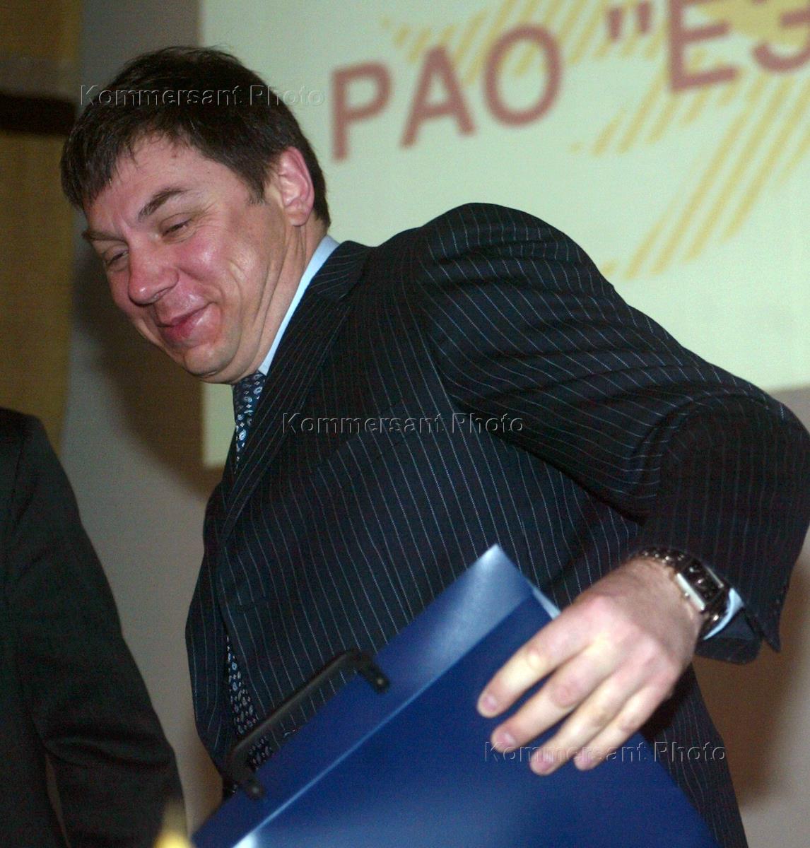 Председатель правления РАО "ЕЭС России" Анатолий Чубайс на совещании на тему: "Концепция технической политики ОАО РАО "ЕЭС России" и потенциал зарубежных производителей в ее реализации". Совещание прошло во Всероссийском теплотехническом институте.