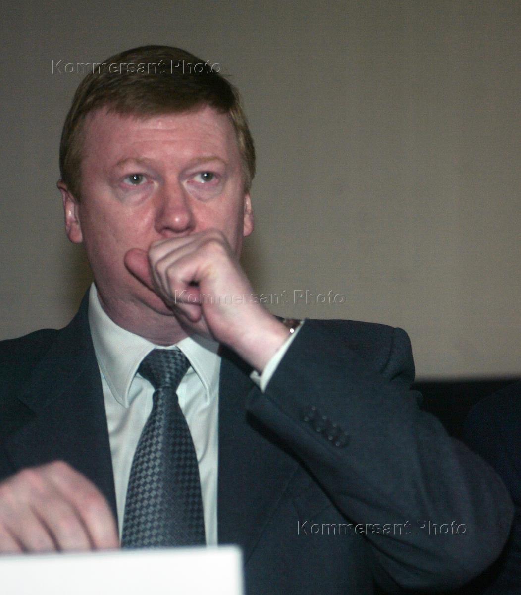 Председатель правления РАО "ЕЭС России" Анатолий Чубайс на совещании на тему: "Концепция технической политики ОАО РАО "ЕЭС России" и потенциал зарубежных производителей в ее реализации". Совещание прошло во Всероссийском теплотехническом институте.
