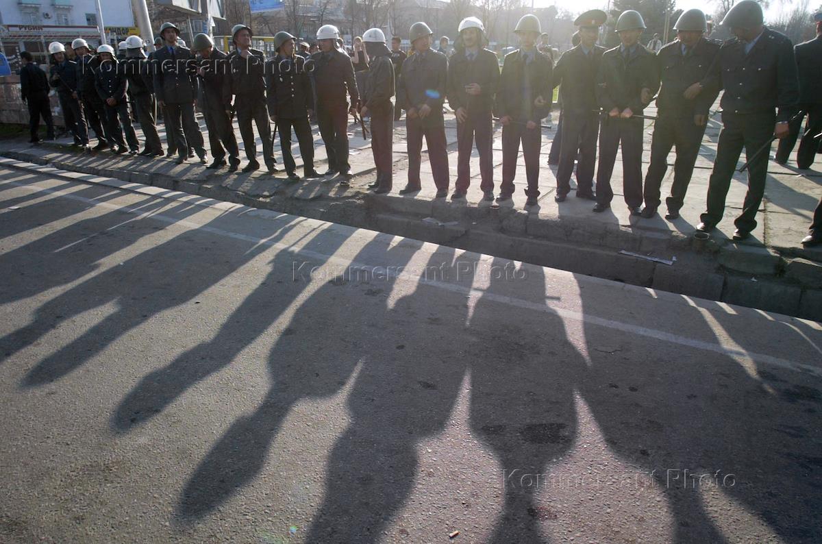Политическая ситуация в Киргизии. Противостояние оппозиции и действующей власти. Милицейское оцепление.