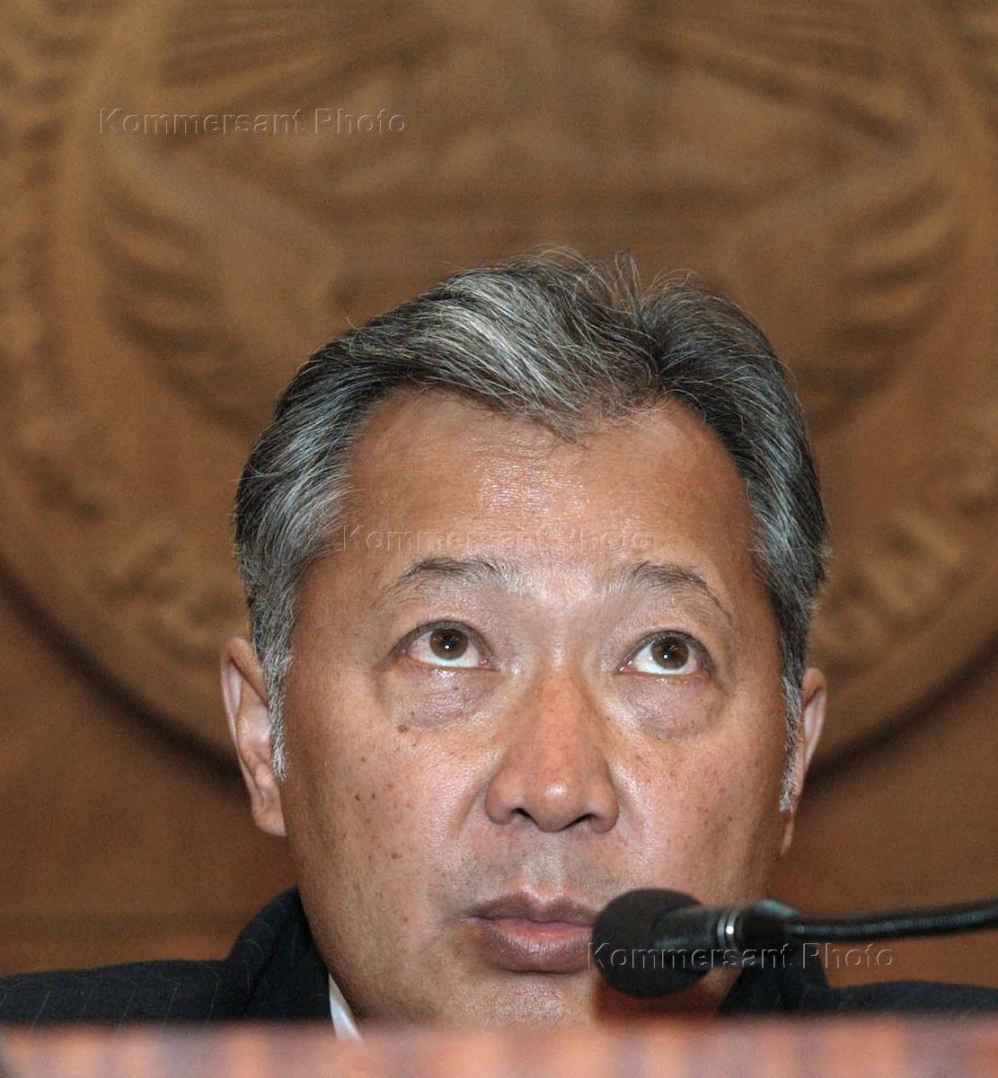 Political situation in Kirghizia. Kurmanbek Bakiyev, acting president and prime minister of the former Soviet republic of Kyrgyzstan takes part in a government meeting.