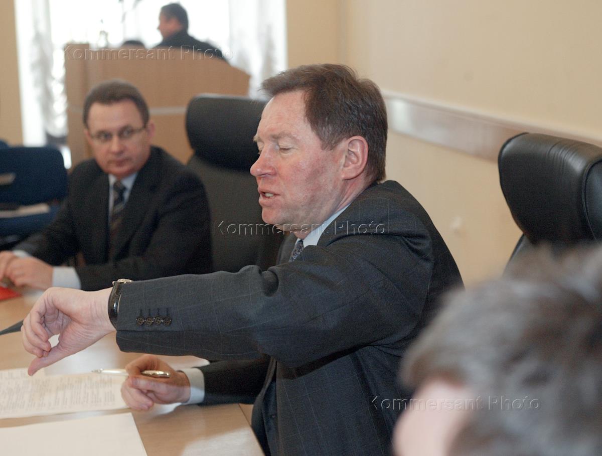 Russian Regional Development Minister Vladimir Yakovlev (left) takes part in a session of the staff.
