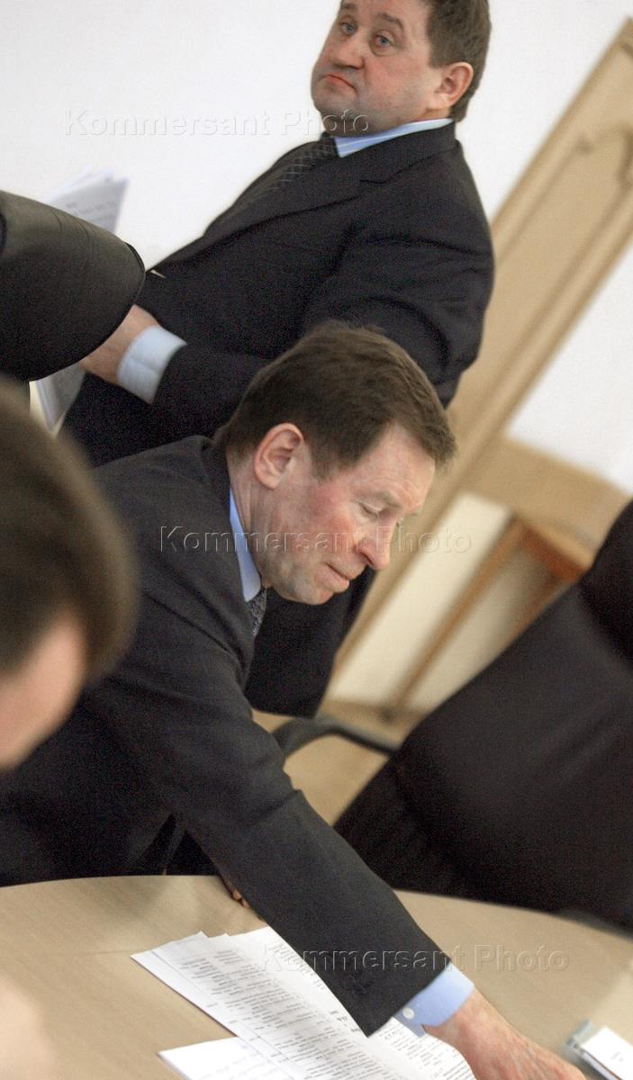 Russian Regional Development Minister Vladimir Yakovlev (left) takes part in a session of the staff.