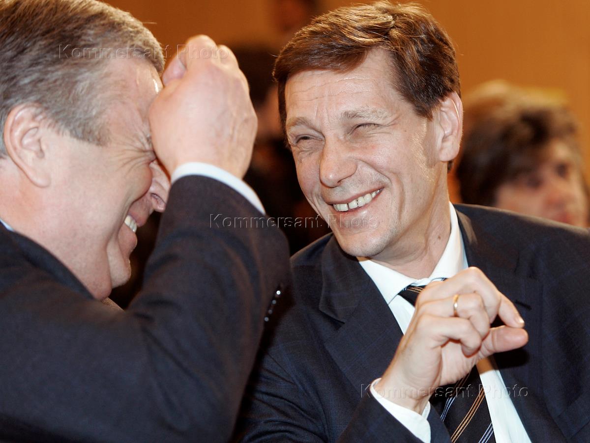 State secretary of the Union of Russia and Belorussia Pavel Borodin (left) and Russian Deputy Prime Minister Alexander Zhukov (right) take part in the Golden Gong 2004 awards ceremony. The ceremony was held in the President Hotel.