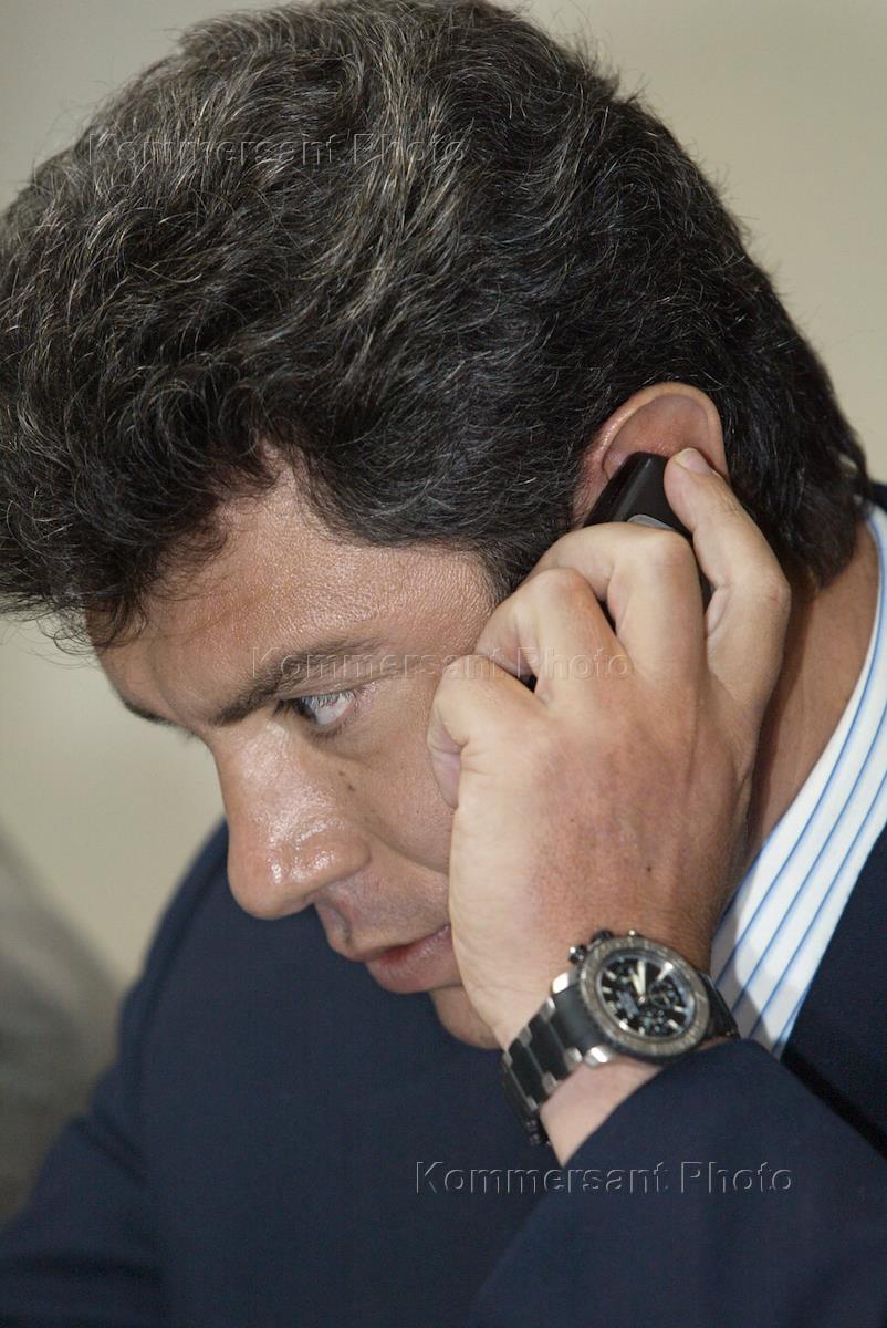 Boris Nemtsov, the former chairman of the Russian right of centre liberal party Union of the Right Forces (SPS) is interviewed after a press conference.