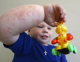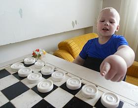 Eight years old Alexey Lobanov with the total developmental anomaly of the blood vessels desease.