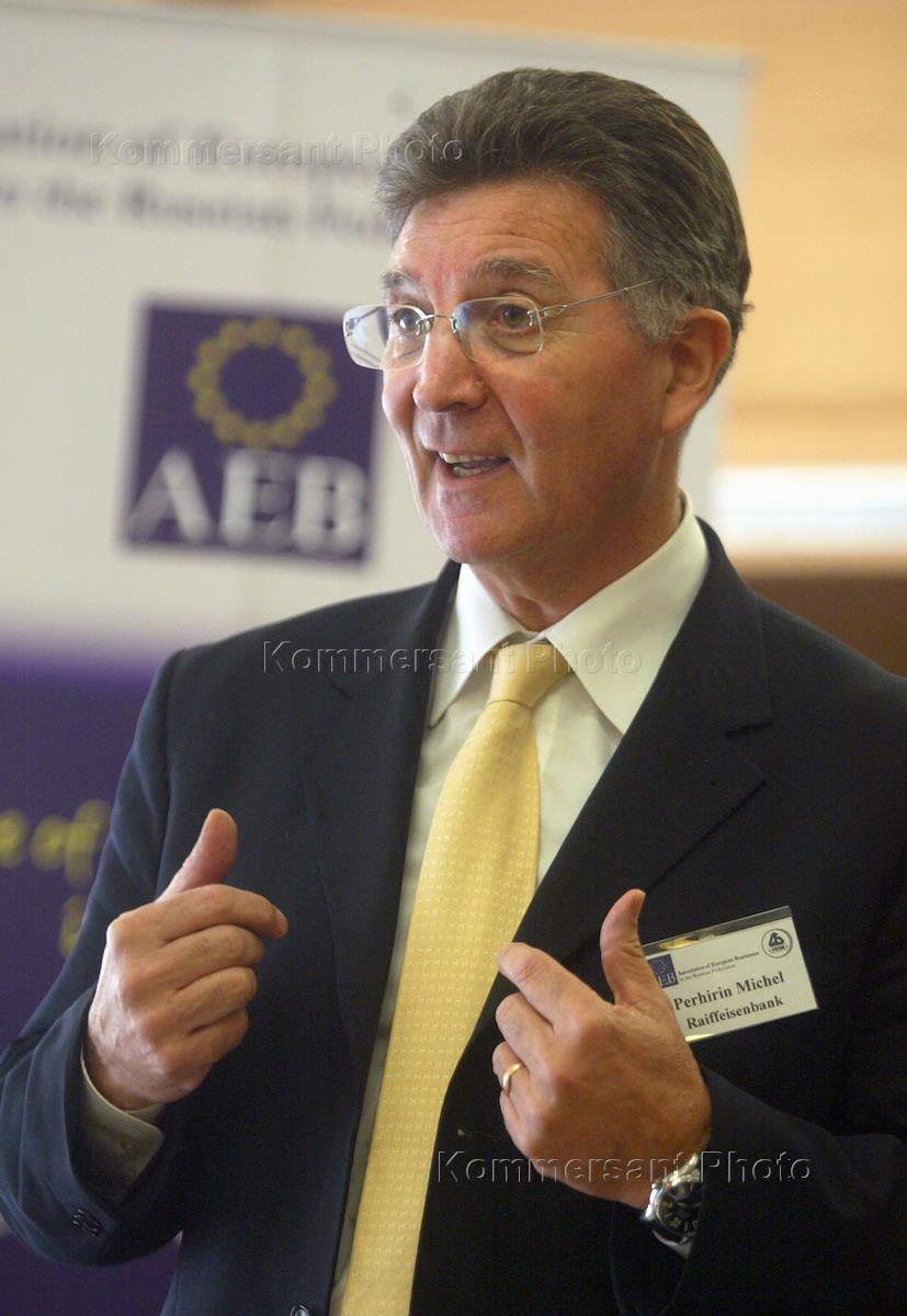 Raiffeisenbank Austria's Board Chairman Michel Perhirin takes part in the round table conference headlined 'International image of Russian banks'.