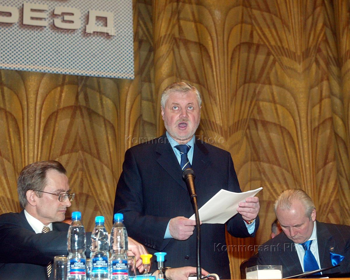 Председатель Совета Федерации России, лидер "Российской Партии Жизни" Сергей Миронов (в центре) во время VI съезда партии. Съезд прошел в Российской академии государственной службы.