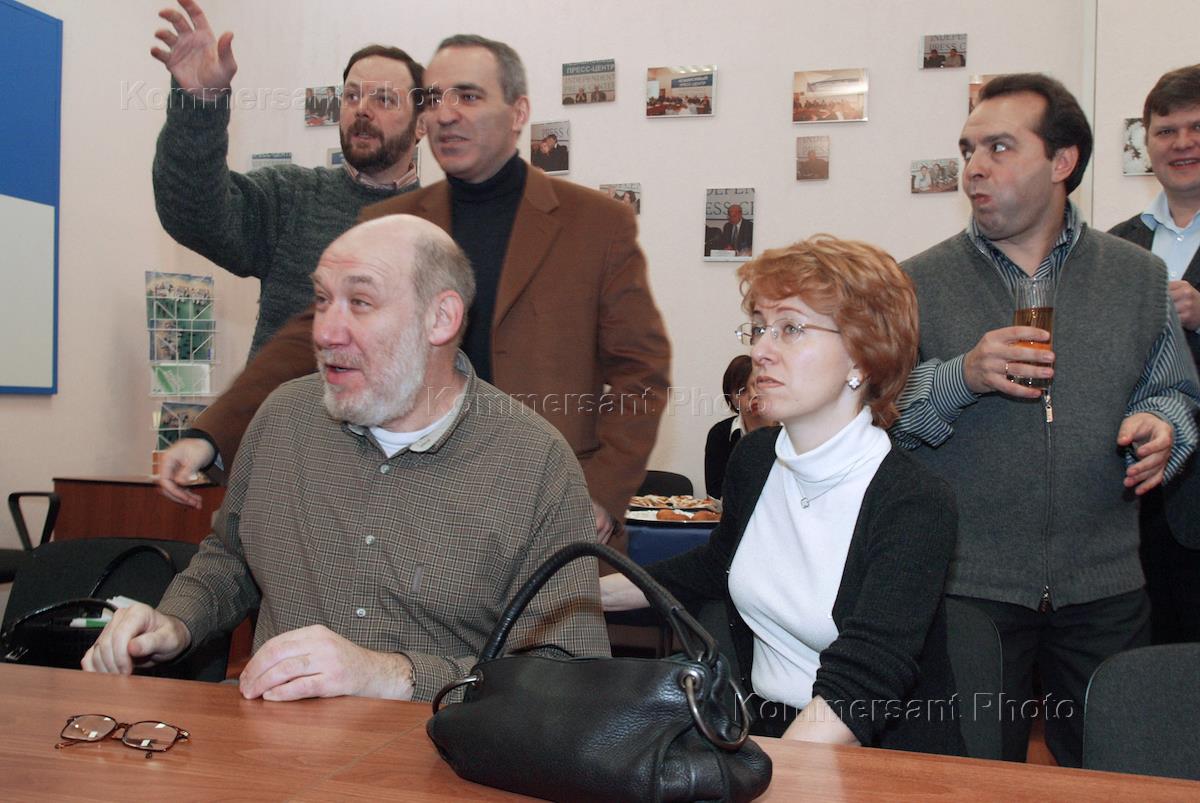 President of INDEM Foundation Georgy Satarov (left) and former world champion Garry Kasparov (centre) takes part in session of the Committee-2008 held to discuss the foundation of a united democratic party.
