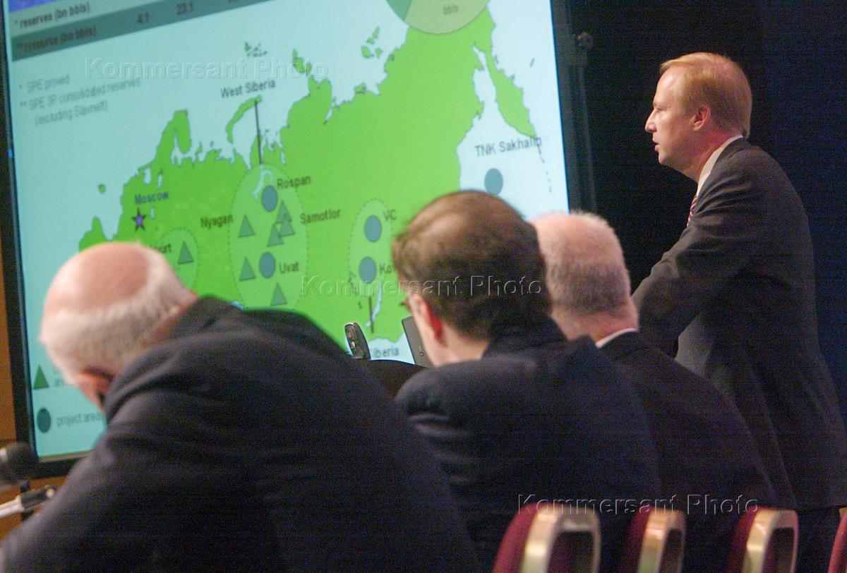 Помощник Президента России Игорь Шувалов (справа) и президент Американской торговой палаты в России Эндрю Сомерс (в центре) на Шестой ежегодной инвестиционной конференции "Экономическая ситуация и инвестиционный климат в России". Конференция прошла в конференц-зале гостиницы "Рэдиссон САС Славянская".