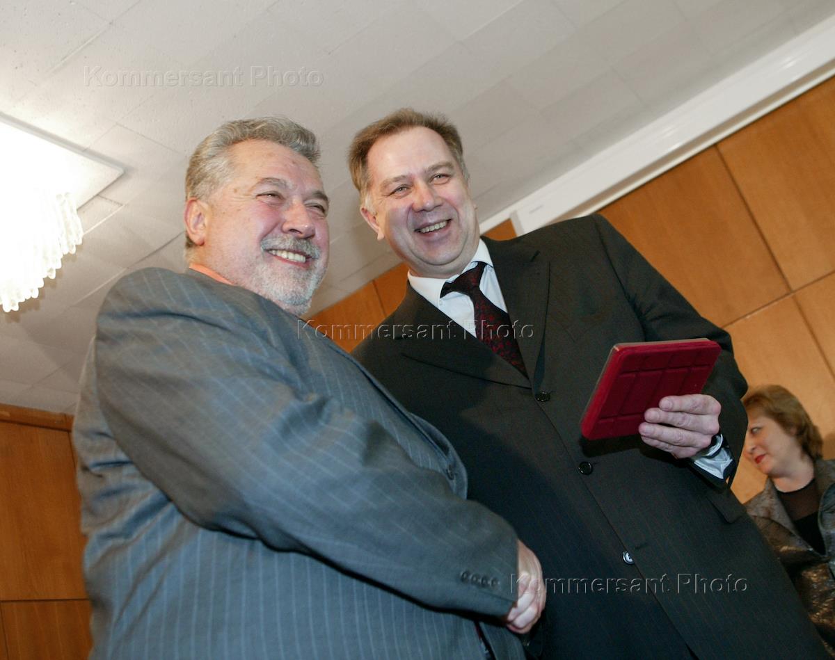 Russian Culture and Mass Communications Minister Alexander Sokolov (right) and Art Director of 'Nika' movie award Yuly Gusman (left) attend the state awards ceremony in the Ministry of Culture and Mass Communications.