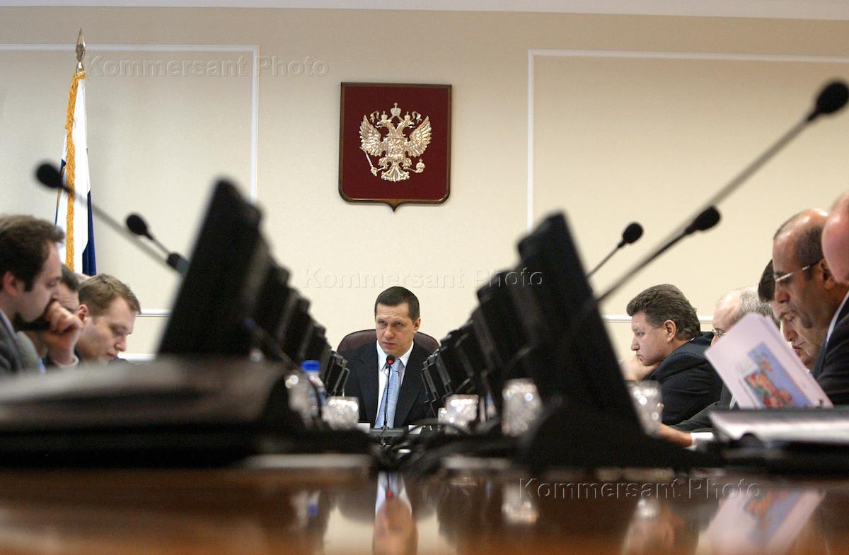 Russian Minister of Natural Resources Yuri Trutnev (right) takes part in the session of the ministry's board.