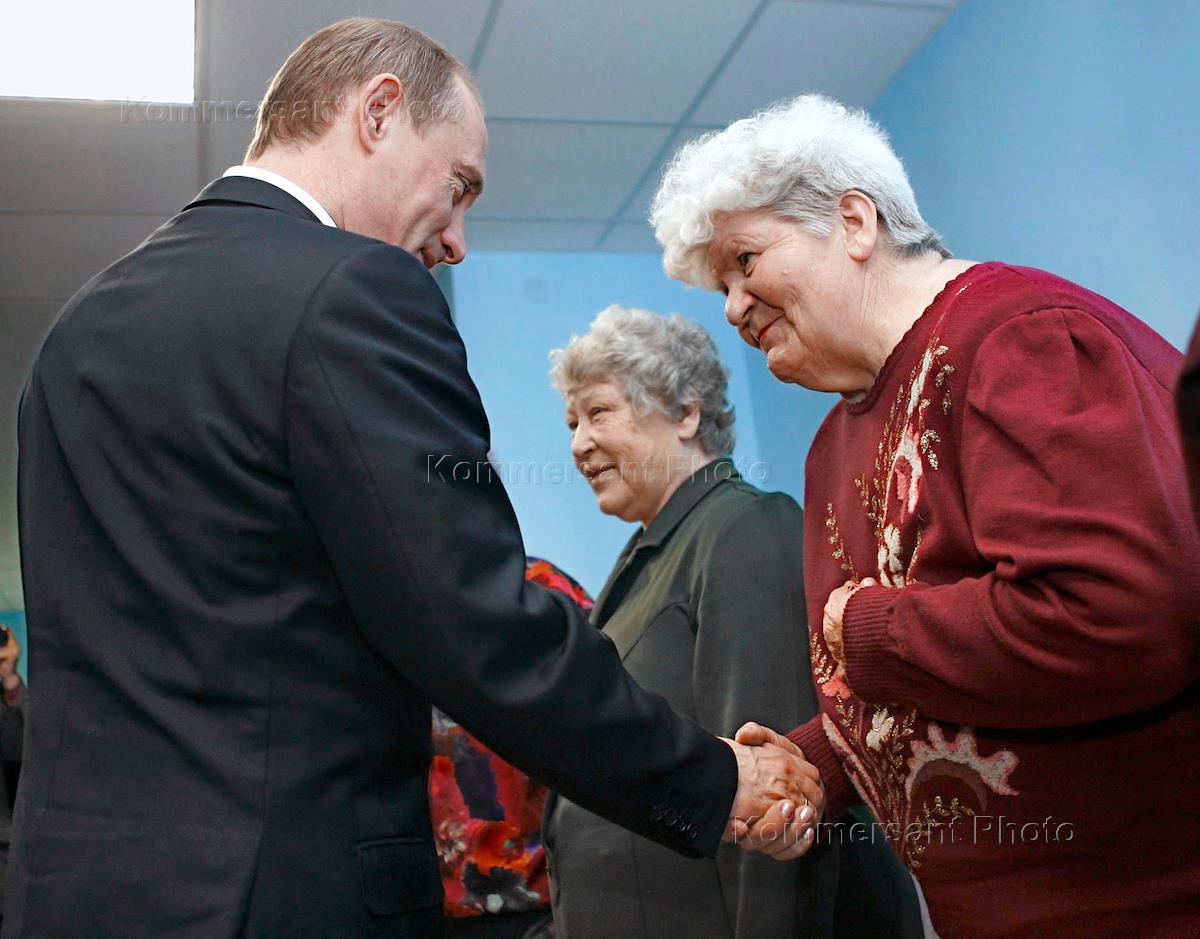 Министр здравоохранения и социального развития России Михаил Зурабов (слева) во время встречи с ветеранами Великой Отечественной войны во время праздничных мероприятий, посвященных освобождению города Орла от фашистских захватчиков.