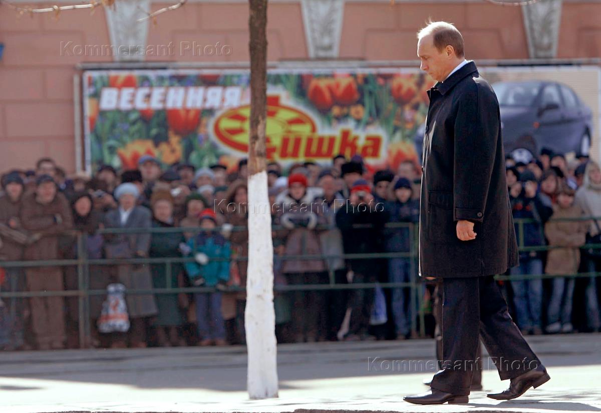 Президент России Владимир Путин после возложения цветов к памятнику освободителей города Орла от фашистских захватчиков. Владимир Путин прибыл в город для проведения заседания российского оргкомитета "Победа".