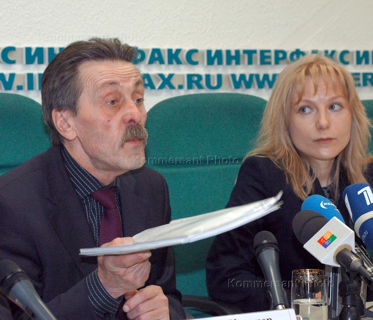 Адвокаты сотрудника НК "ЮКОС" Алексея Пичугина Ксения Костромина (справа) и Георгий Каганер (слева) во время пресс-конференции на тему: "Итоги и последствия дела Пичугина". Пресс-конференция прошла в агентстве "Интерфакс".