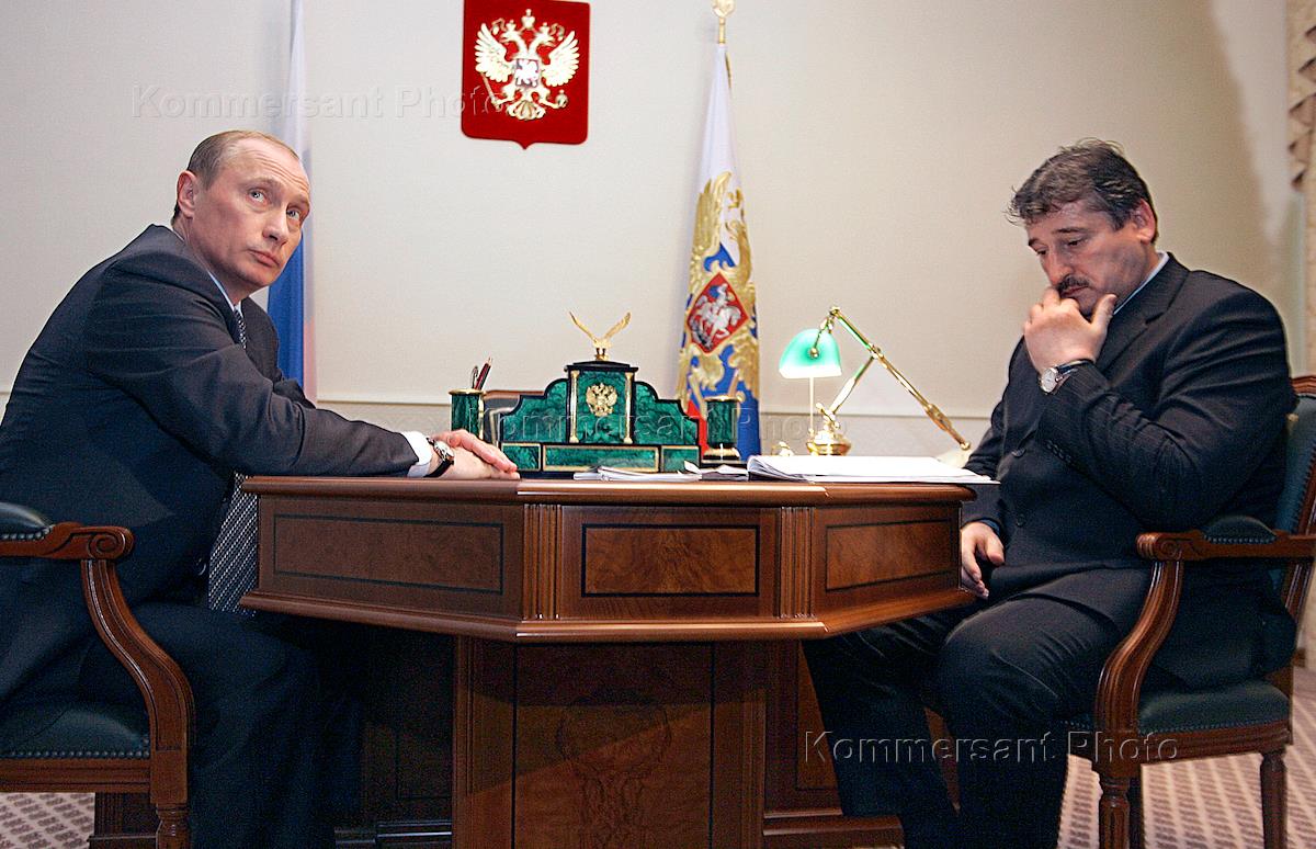 Russian President Vladimir Putin (left) met President of the Chechen republic Alu Alkhanov (right). The meeting was held in the Russian presidential residence of Bocharov Ruchey outside the Back Sea resort of Sochi.