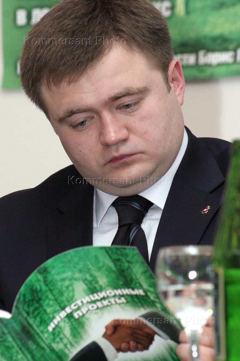 Petr Fradkov, the son of Russian Prime Minister Mikhail Fradkov, deputy managing director of the joint stock Far-Eastern Shipping Company takes part in a press conference.