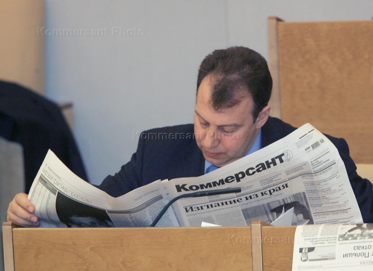 Депутат читает газету "Коммерсантъ" на заседании Государственной Думы России.