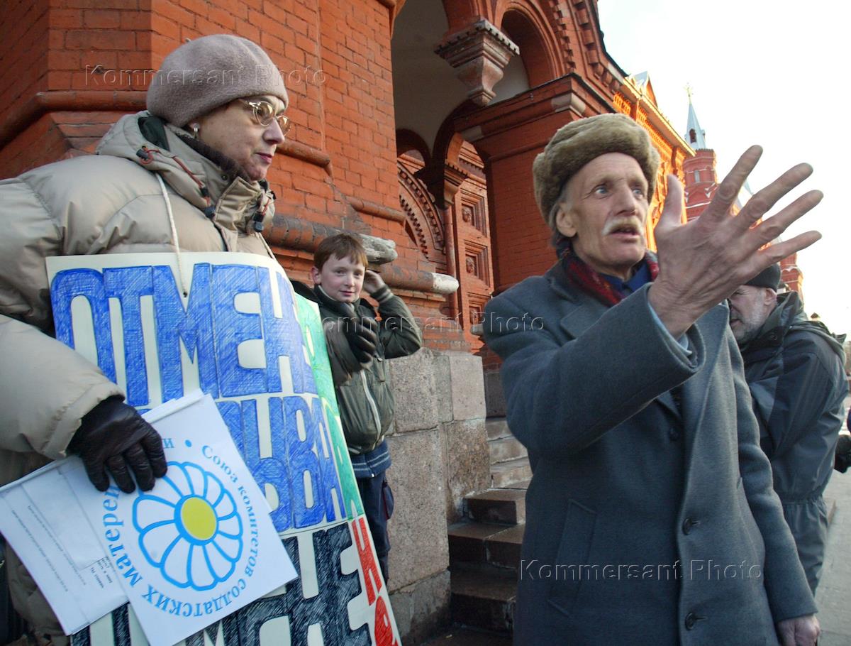 A rally was held on Revolyutsii sqr. to demand the abolishment of the draft in Russia.