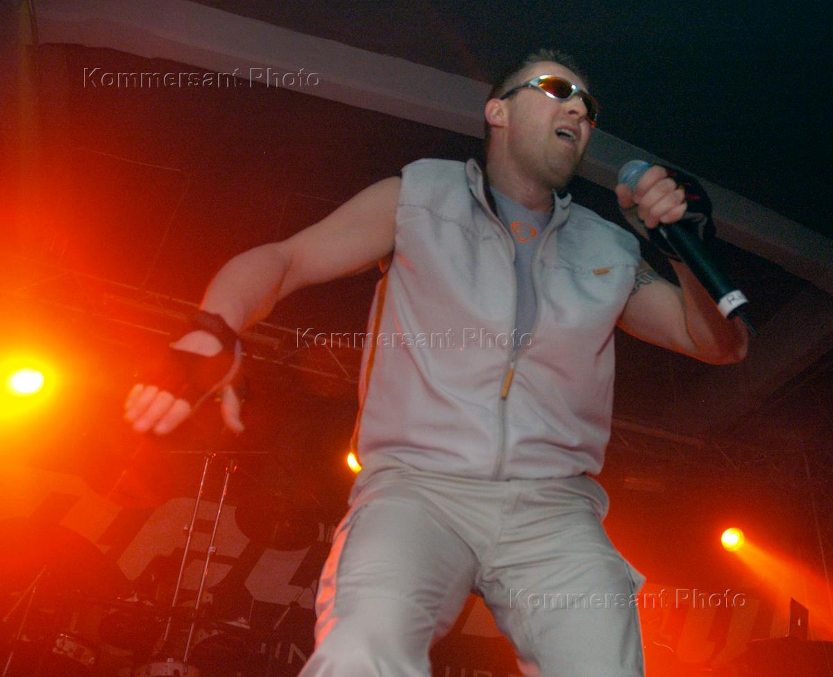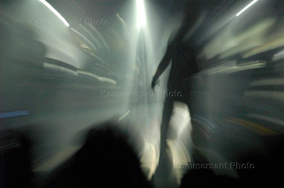 Группа "Front 242" (Фронт 242) во время выступления на своем сольном концерте в клубе "Механика".