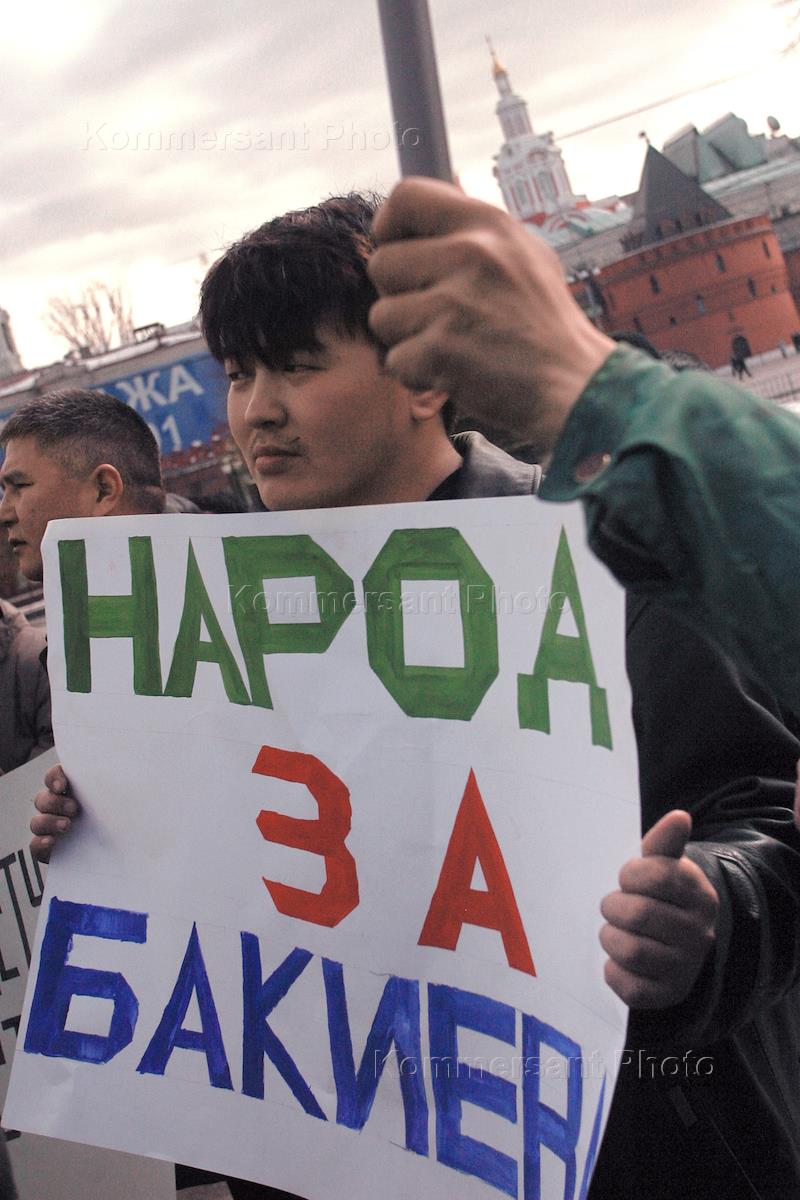 A rally was held in downtown Moscow to show support for the new Kyrgyz government.