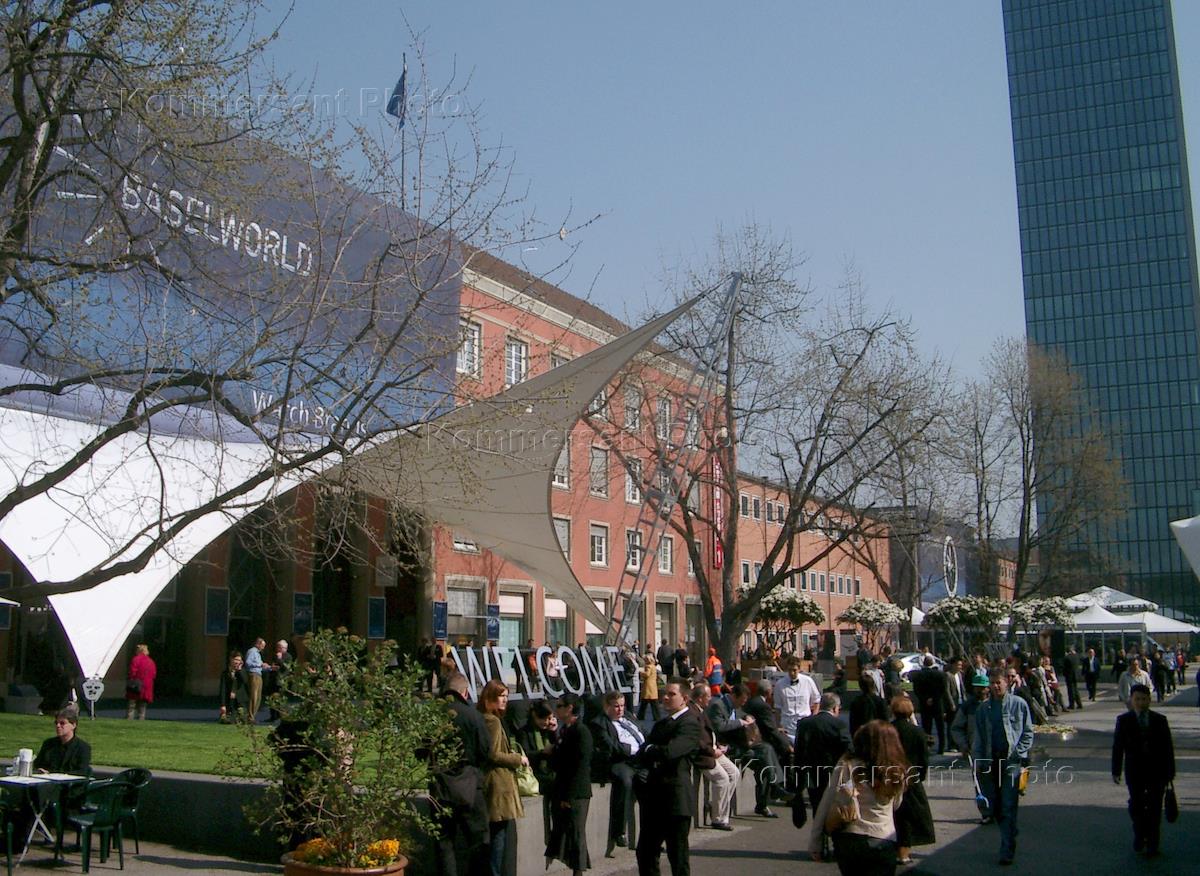 Visitors stand in front of the entrance to the pavilion in Geneva where the 12th SIHH (Salon International de la Haute Horlogerie) watch salon was held.