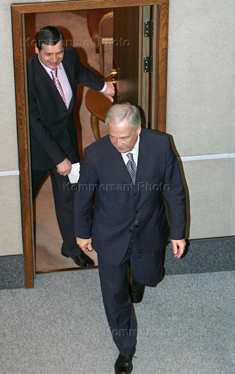 The Russian State Duma Chairman Boris Gryzlov (right) and head of the State Duma apparatus Alexander Lotorev (left) attend the State Duma session.