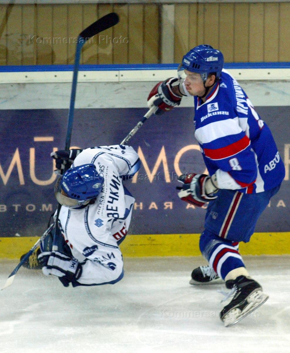 Russian hockey championship match between Lada Togliatti and Dynamo Moscow.