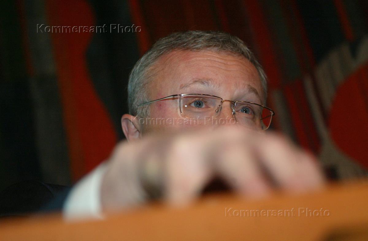 Russian Energy and Industries Minister Victor Khristenko (right) and President of the Russian Business and Industry Association (RSPP) Arcady Volsky (left) take part in the first CES (Common Economic Space) integration forum (Russia, Belarus, Kazakhstan, Ukraine). The event was held in the President hotel.