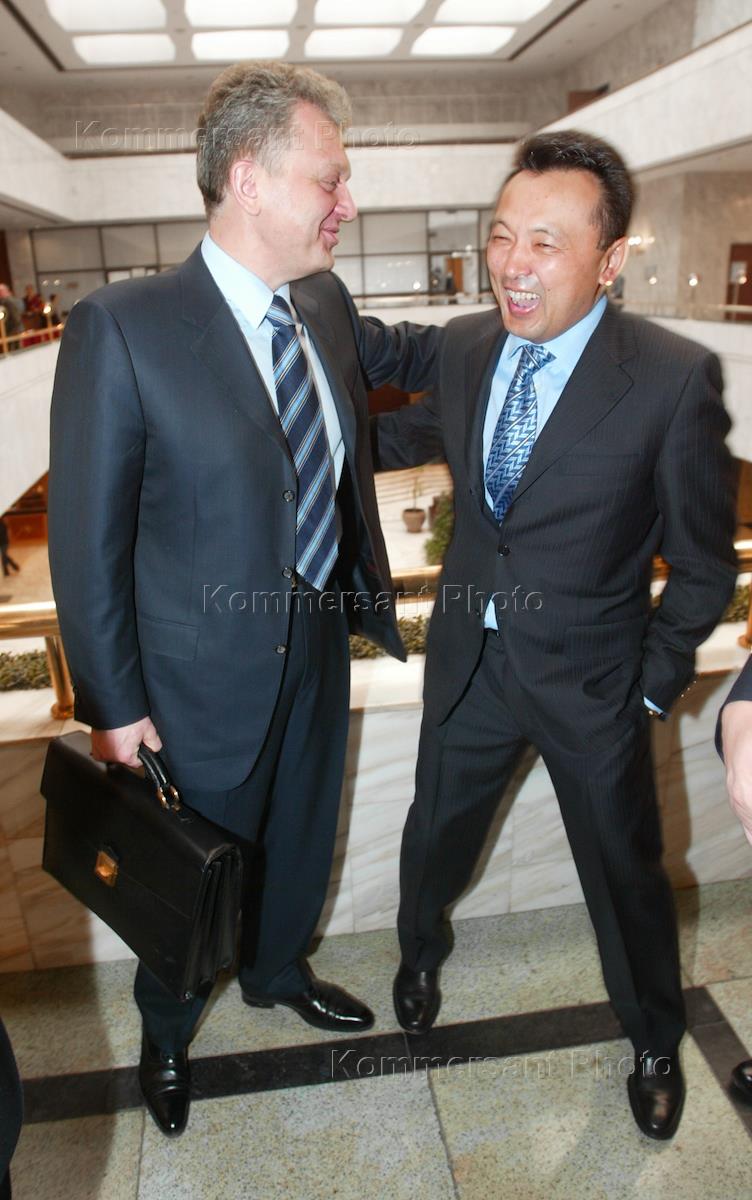 Secretary general of the Eurasian Economic Community Grigory Rapota (centre) and Deputy Prime Minister of the Kazakh government Sauat Mynbaev (left) take part in the first CES (Common Economic Space) integration forum (Russia, Belarus, Kazakhstan, Ukraine). The event was held in the President hotel.