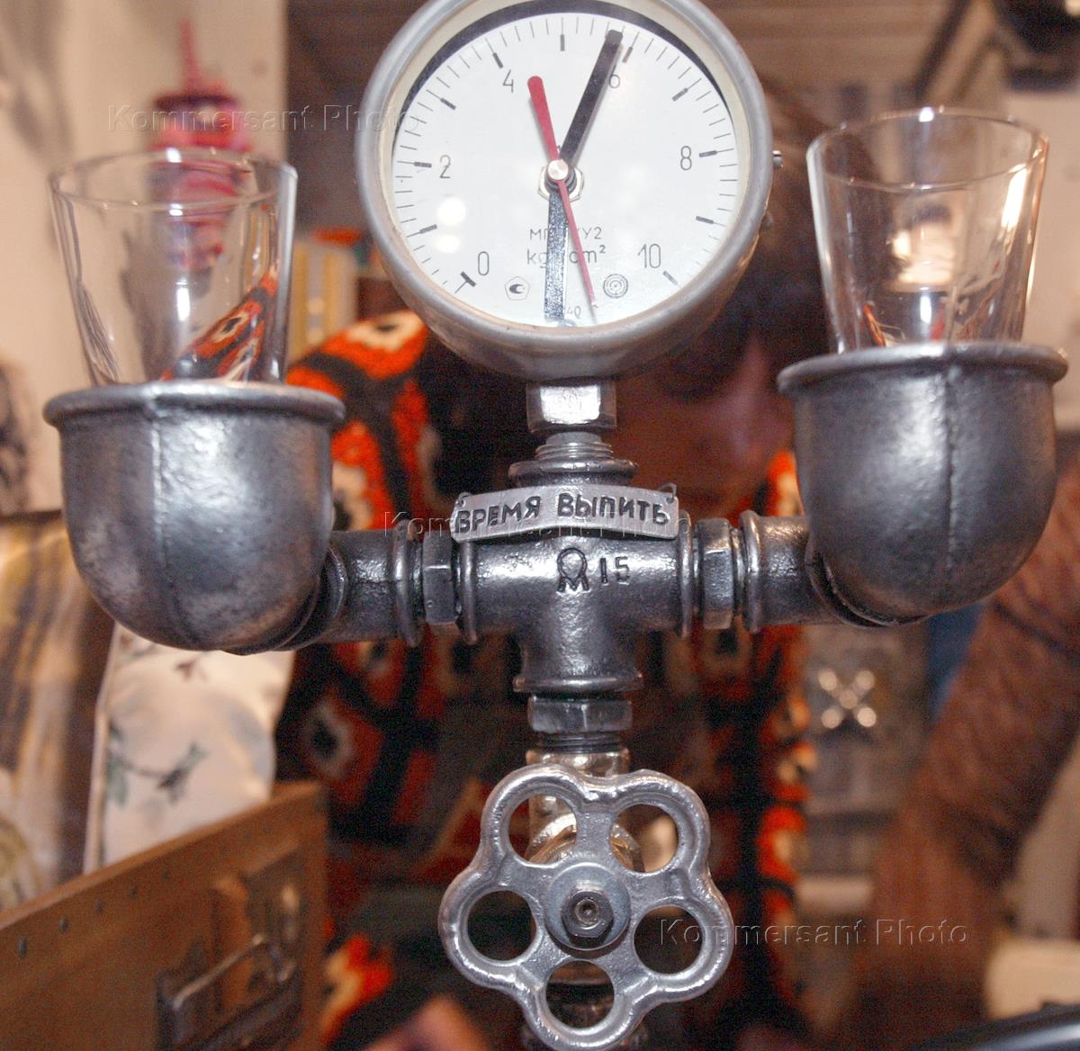 Designer Andrey Bartenev attends the opening of the exhibition-fair "Flee market".
