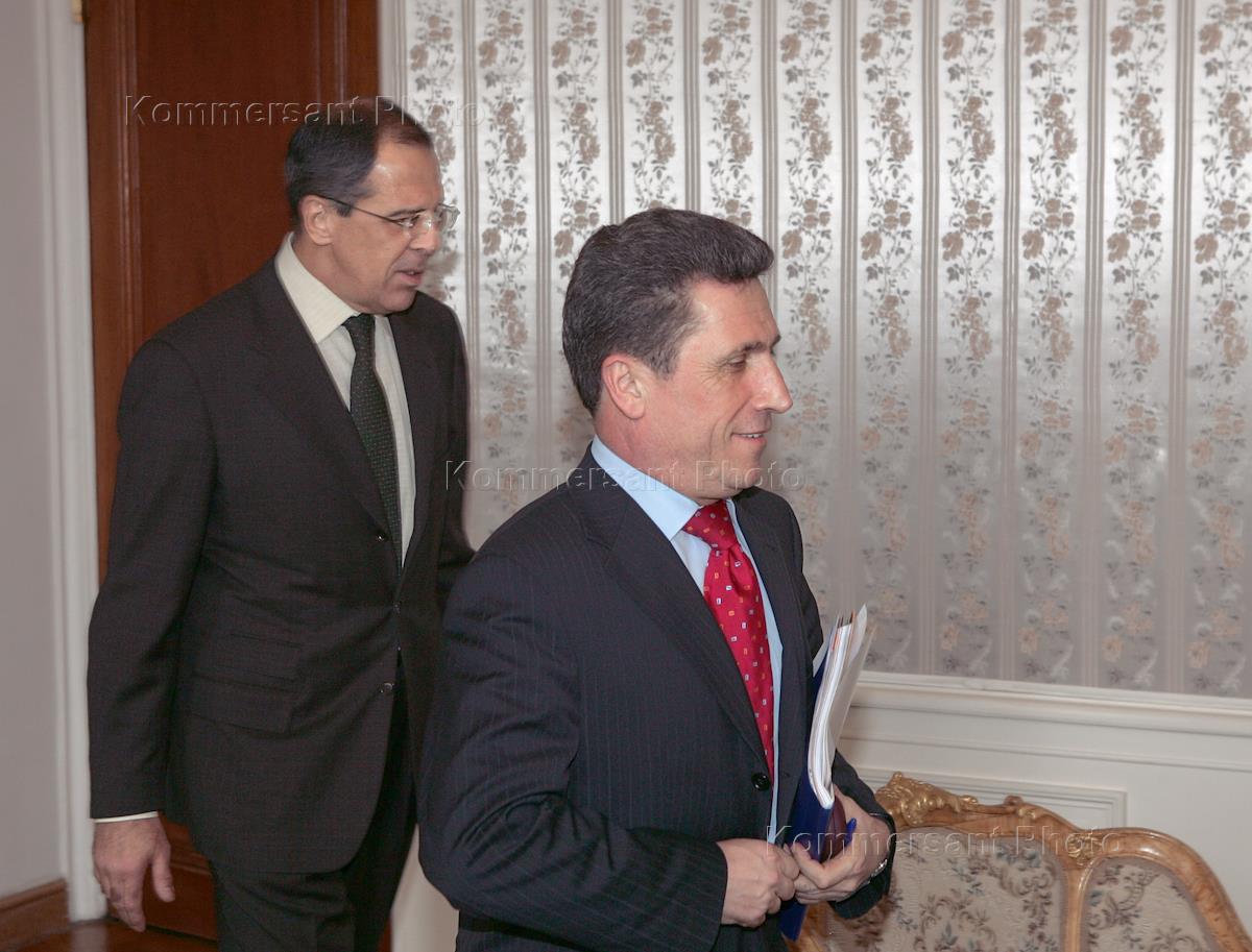 Russian Foreign Minister Sergey Lavrov (left) met Lithuanian Foreign Minister Antanas Valionis (right).