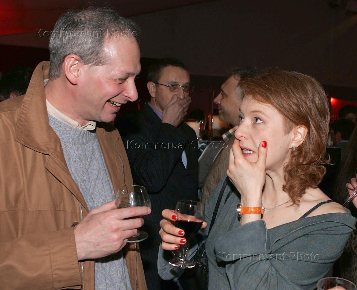 Российский экономический форум в Лондоне. Глава "Издательского дома Родионова" Алексей Волин (слева) и актриса Амалия & Амалия (справа) на встрече российского и английского бизнеса нового поколения в лондонском музее "Сомерсет Хаус".