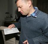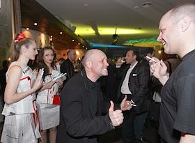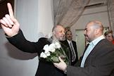 Глава сети универсамов "Перекресток" Лев Хасис на презентации музыкального альбома на стихи генерального директора Издательского дома "КоммерсантЪ" Андрея Васильева "Взрослые песни". Презентация состоялась в кафе "КоммерсантЪ".