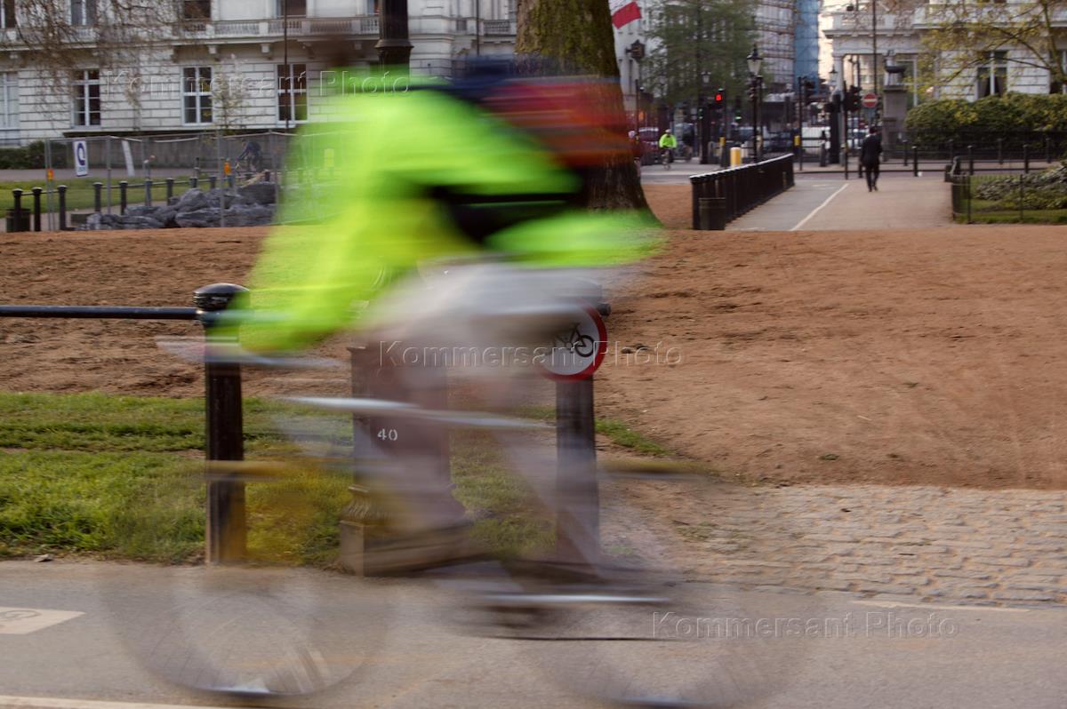 Велосипедист на лондонской улице.