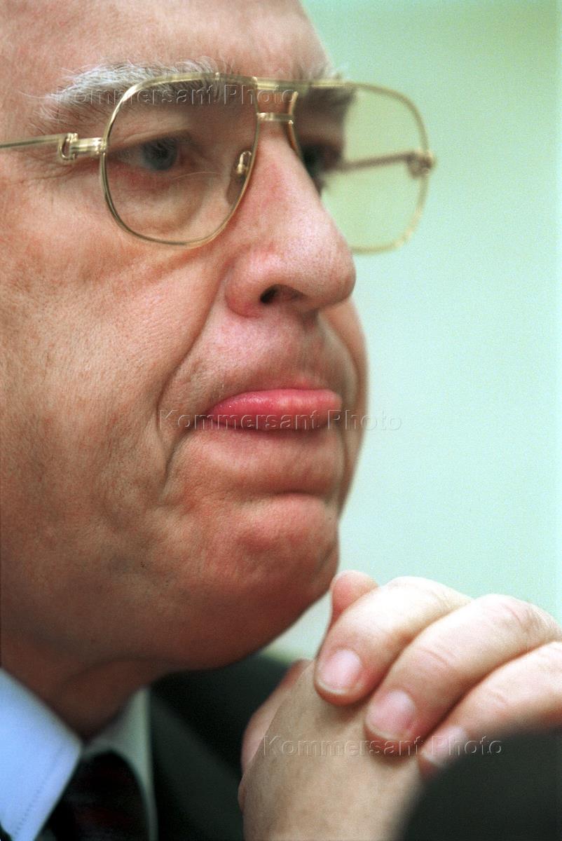 Председатель Совета директоров РАО "Газпром", председатель думской межфракционной комиссии "Энергия России" Виктор Черномырдин на пресс-конференции, по поводу своего иска в Генпрокуратуру и Московский городской суд на кандидата в президенты США от республиканской партии Джорджа Буша, в агентстве "Интерфакс".
