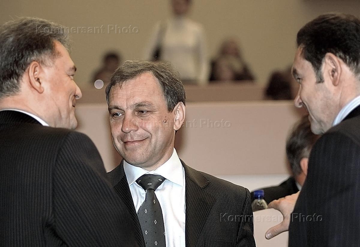 Новый спикер Саратовской областной думы Павел Большеданов (в центре) после утверждения его кандидатуры на внеочередном заседании облдумы.