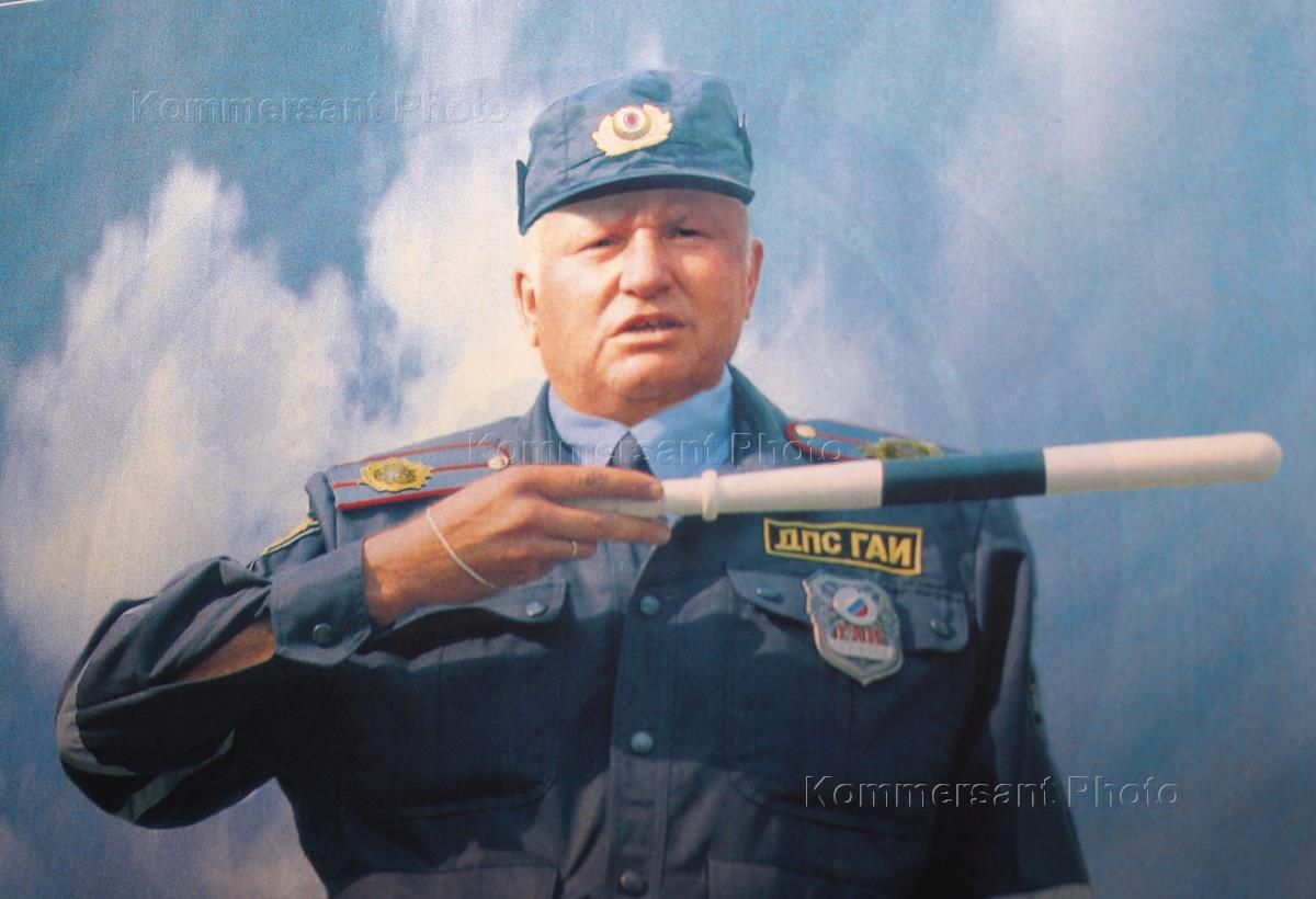 "День открытых дверей" столичного Государственной инспекции безопасности дорожного движения (ГИБДД) для учеников выпускных классов прошел в здании управления ГИБДД ГУВД Москвы. Портрет мэра Москвы Юрия Лужкова в форме сотрудника Дорожно-постовой службы (ДПС) Государственной автоинспекции (ГАИ).