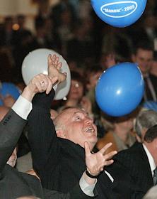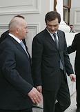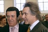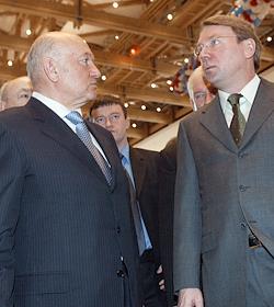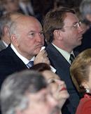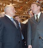 Мэр Москвы Юрий Лужков (слева) и управляющий делами Президента России Владимир Кожин (справа) на церемонии открытия после восстановления центрального выставочного зала "Манеж".