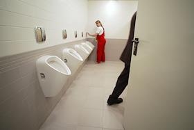 Уборщица в туалете центрального выставочного зала "Манеж".