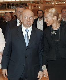 Мэр Москвы Юрий Лужков (слева) и директор Московского дома фотографии Ольга Свиблова (справа) на церемонии открытия после восстановления центрального выставочного зала "Манеж".