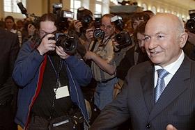 Мэр Москвы Юрий Лужков на церемонии открытия после восстановления центрального выставочного зала "Манеж".