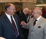 Председатель комитета Государственной Думы России по культуре, певец Иосиф Кобзон (слева) и народный художник СССР Александр Шилов (справа) на церемонии открытия после восстановления центрального выставочного зала "Манеж".